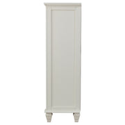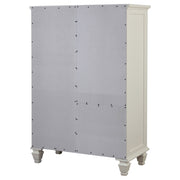 Add refined storage to your bedroom with this versatile door chest, offering both drawers and shelving to organize your essentials. With six spacious drawers and a cabinet door that opens to reveal an additional two drawers with shelving, this chest provides the perfect combination of concealed and open storage. The felt-lined top drawer is ideal for protecting delicate items, while the brushed nickel hardware adds a touch of modern elegance. Built from solid hardwood and engineered wood, this chest is finished in a neutral color, making it both durable and timeless in design. Whether you need extra space for clothing, linens, or other bedroom items, this door chest blends practicality with classic charm. Key Features: • Door chest featuring six drawers and a cabinet door with shelving for versatile storage • Felt-lined top drawer offers protection for delicate items • Cabinet door opens to reveal additional drawers and shelving for organizing linens or accessories • Brushed nickel hardware adds a touch of modern elegance • Soft cream white finish complements both traditional and transitional bedroom styles